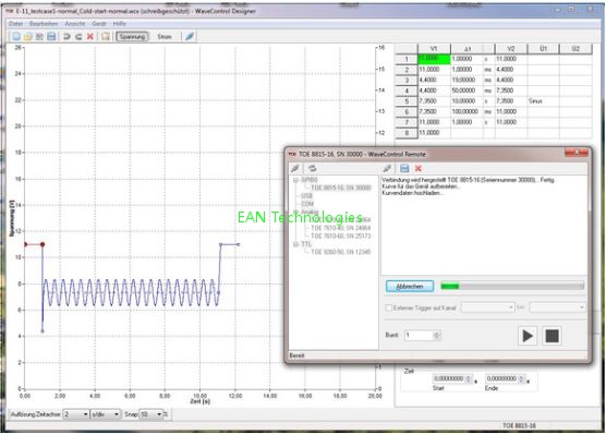 WaveControl软件可在测试站提供波形并控制TOELLNER系统组件,可根据您的要求进行量身定制。使用DAQ卡,任意信号波形都可以通过任意电源或输出功率范围为160 W至5200 W的四象限放大器提供。对于快速中断,TOELLNER提供开关时间低于500 ns的电子开关。